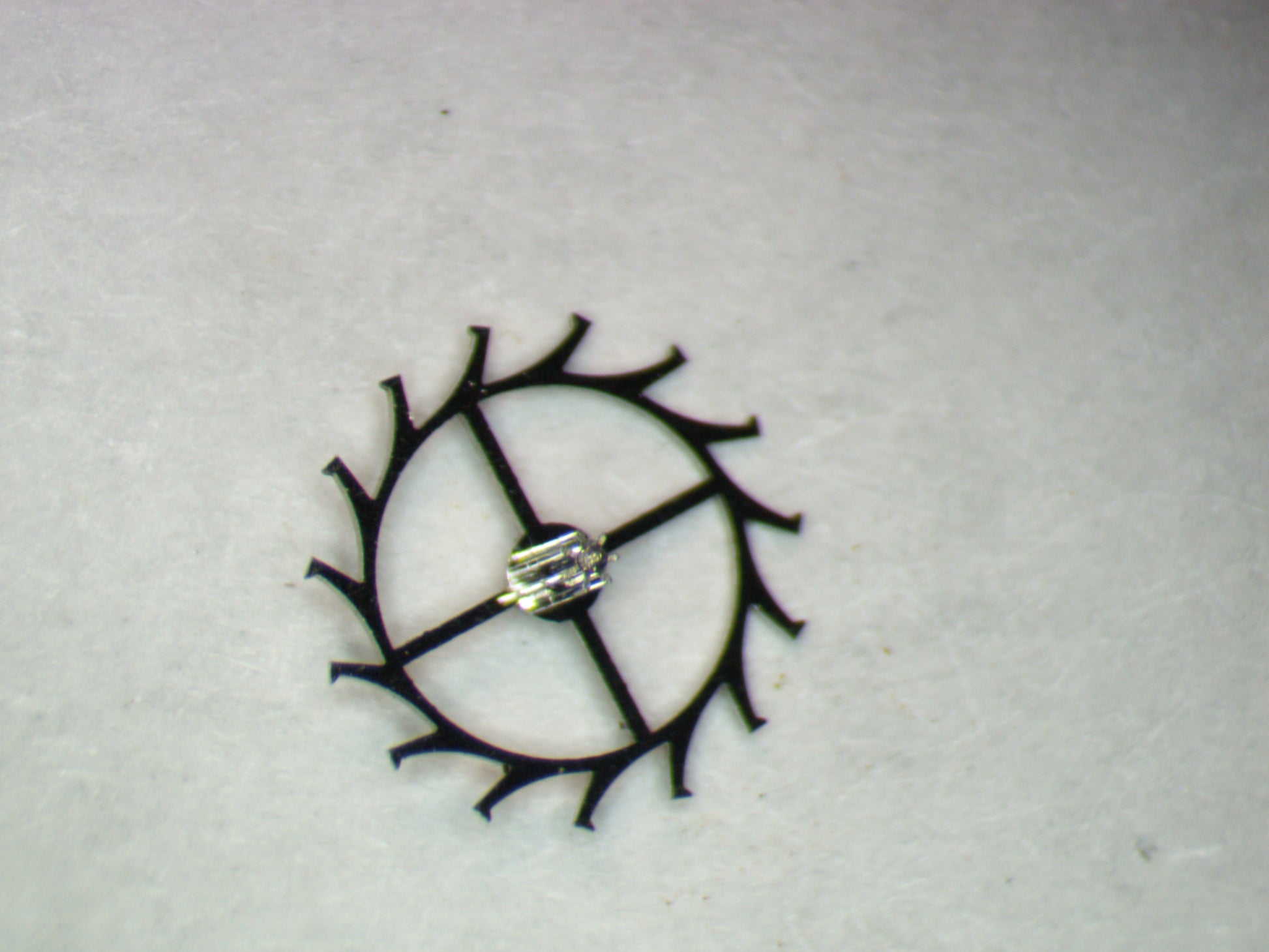 The Escape wheel is an authentic part from a watch movement by Bulova.