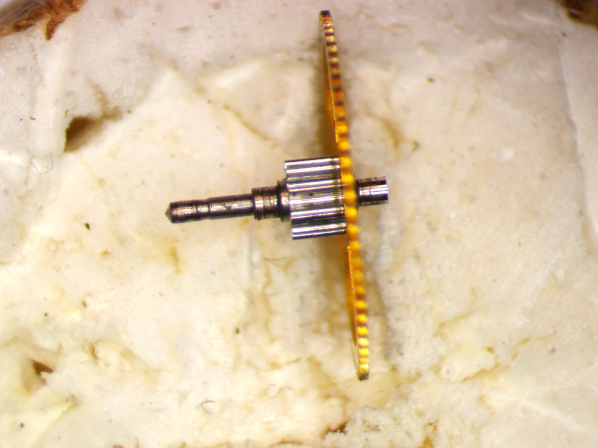 Based on Meyer and Stuedeli 410 movement The Center Wheel is an authentic part from a watch movement by Roamer.