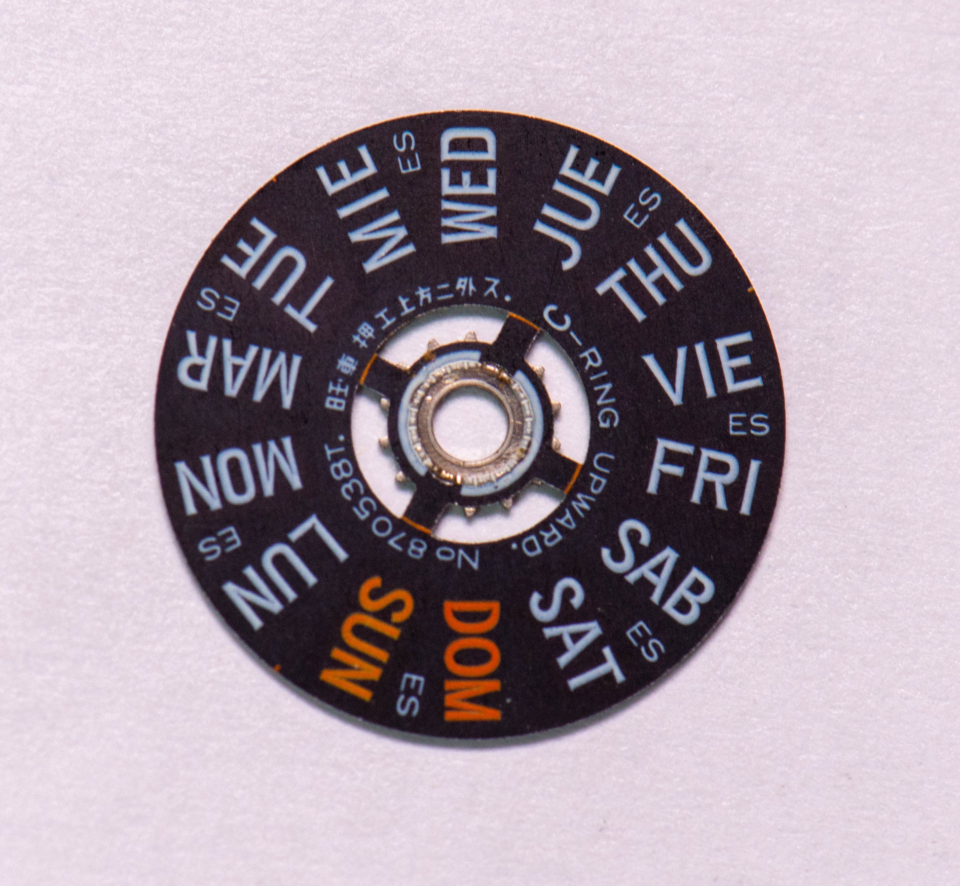 The Day star with dial disk is an authentic part from a watch movement by Seiko.