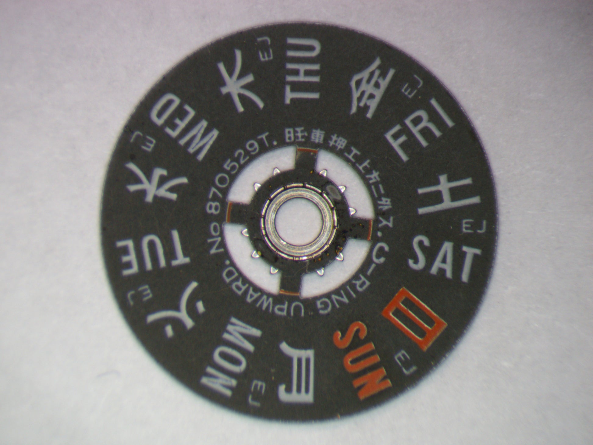 The Day star with dial disk is an authentic part from a watch movement by Seiko.