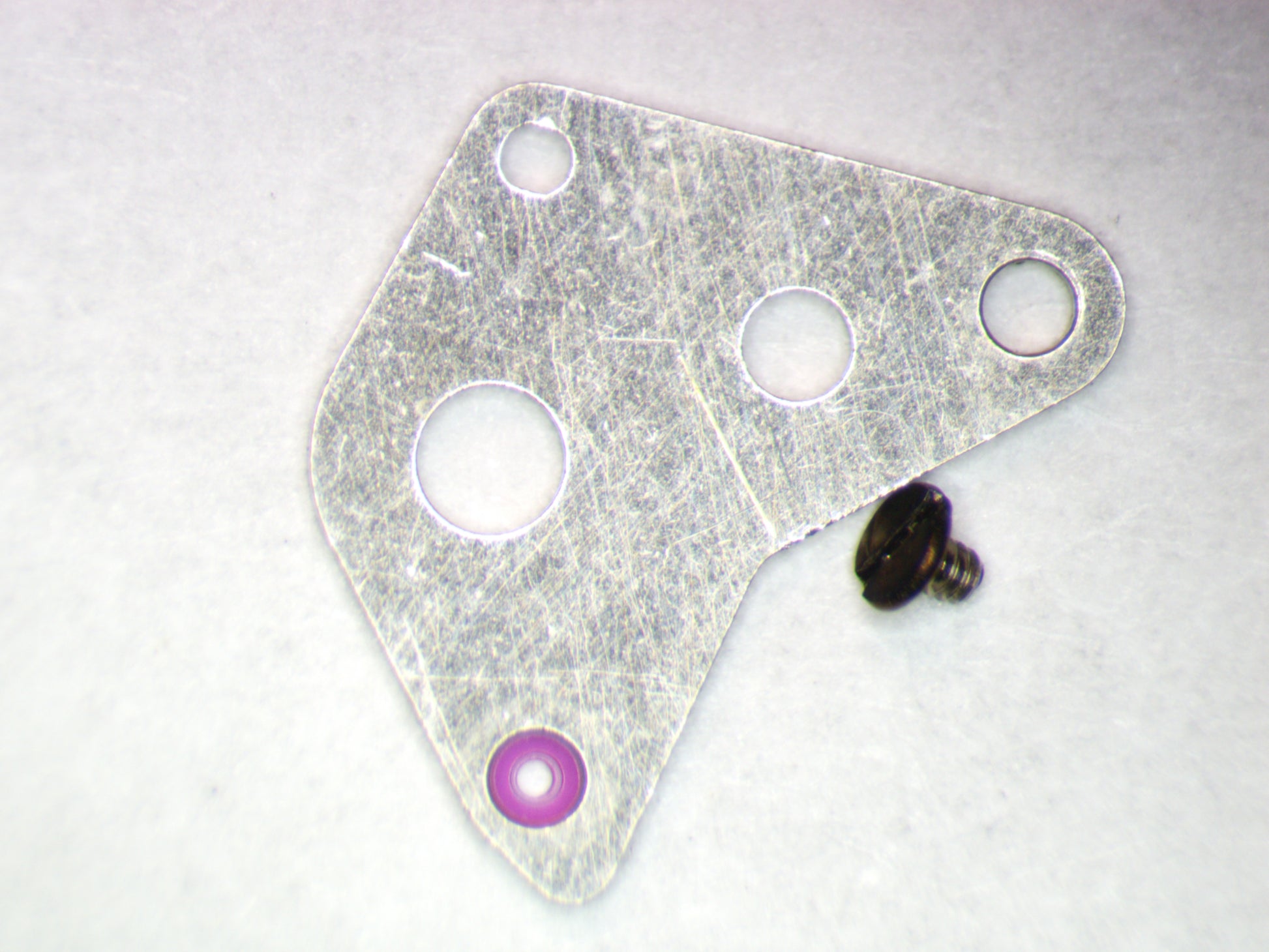The Center Wheel Cock/Bridge is an authentic part from a watch movement by Seiko.